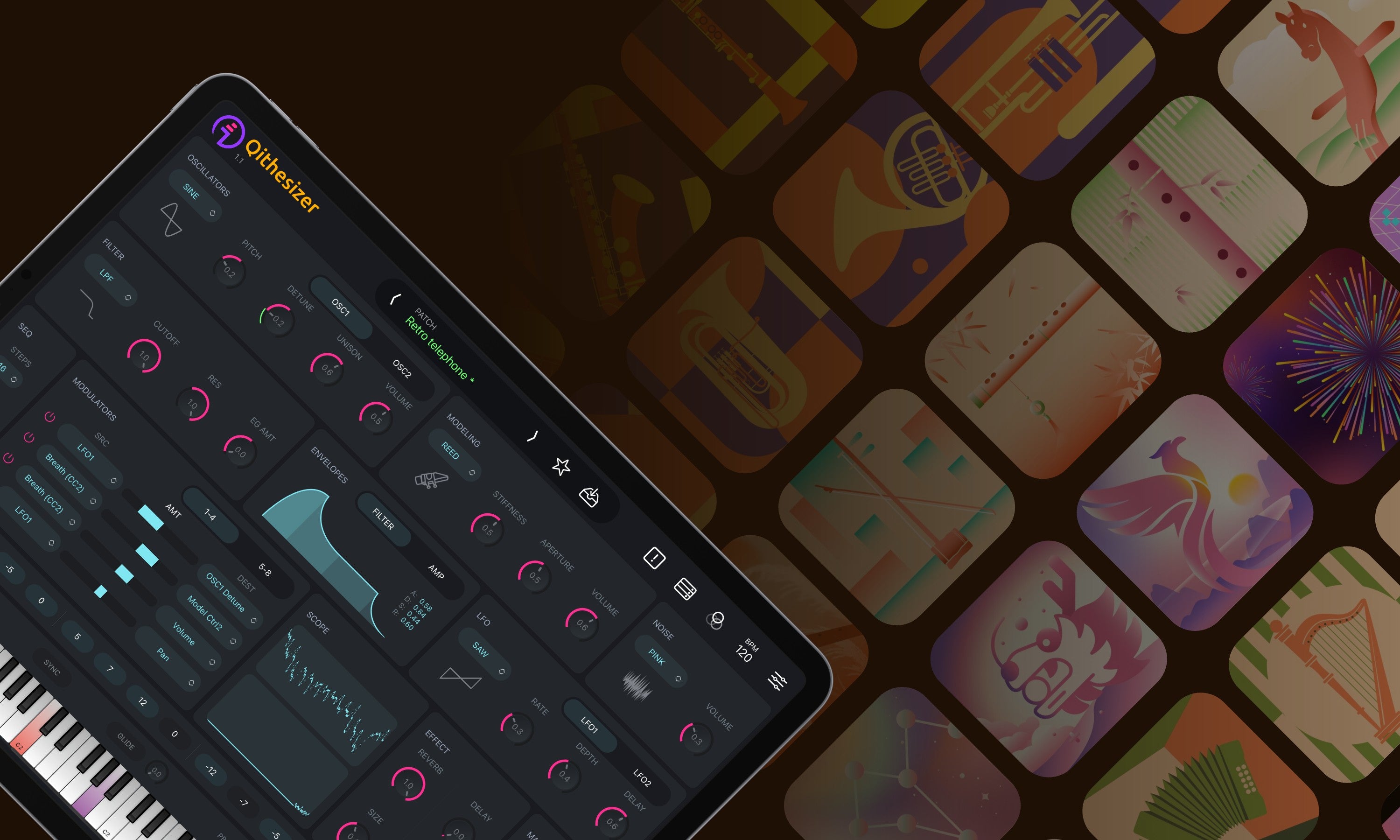 Clarii mini's built-in accelerometer turns playtime into performance. Sculpt sounds with customizable motion control, adding pitch bend, portamento, and vibrato. And with Shake&Play sounds, you can instantly transform Clarii mini into a shaker, rainstick, or sonic sword.
