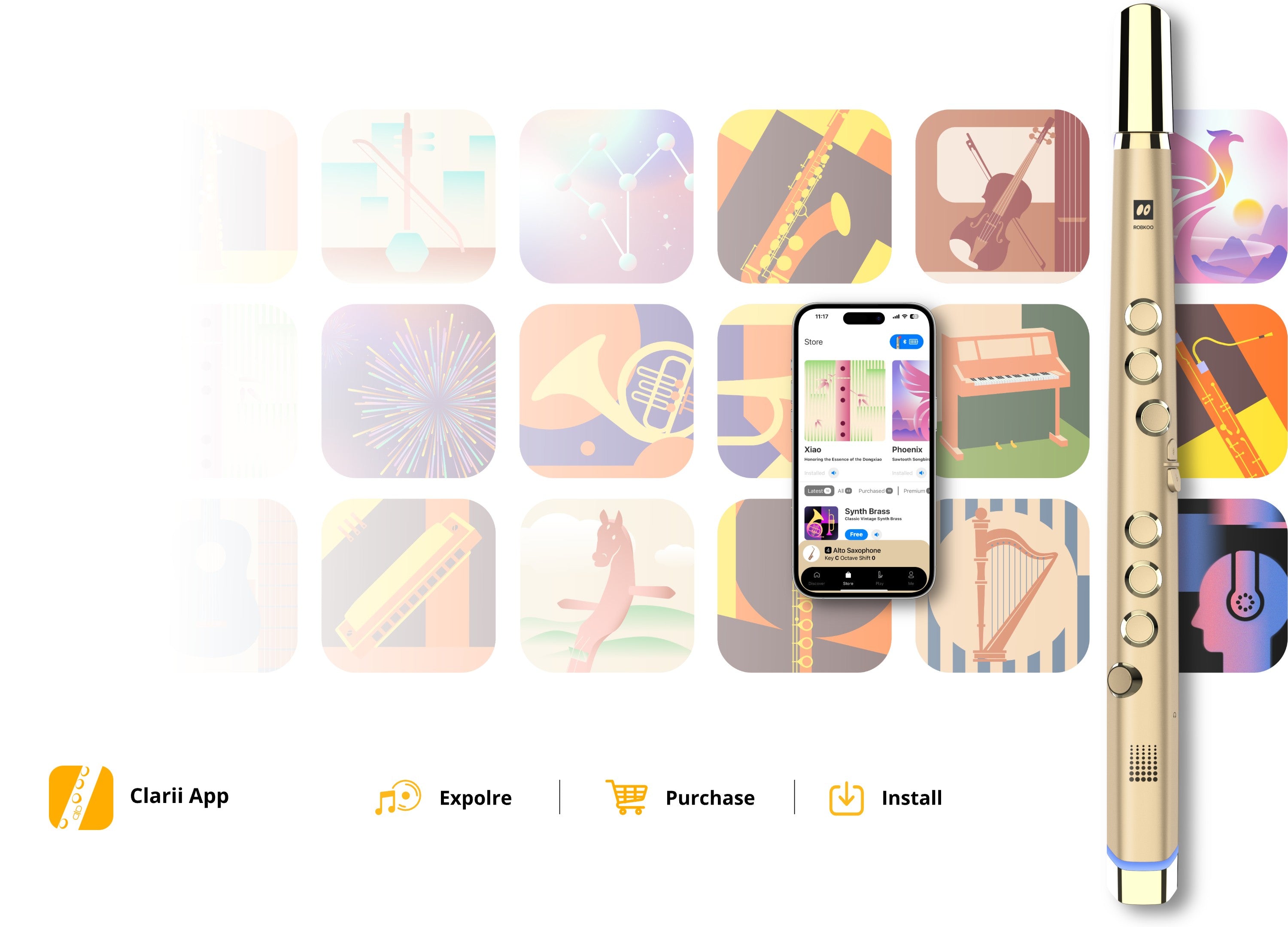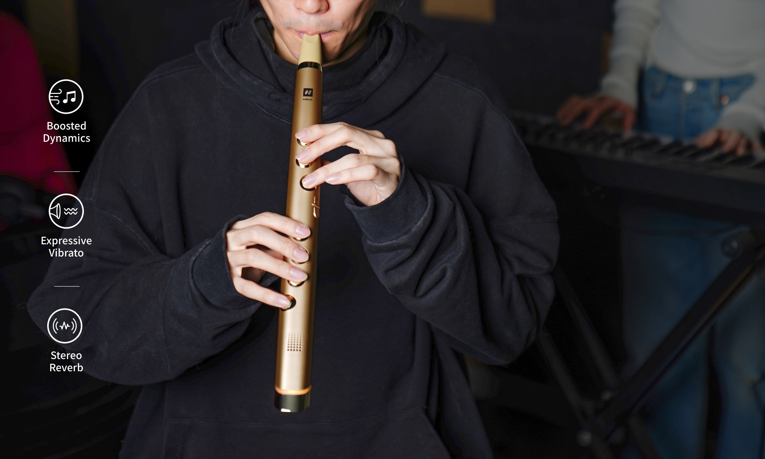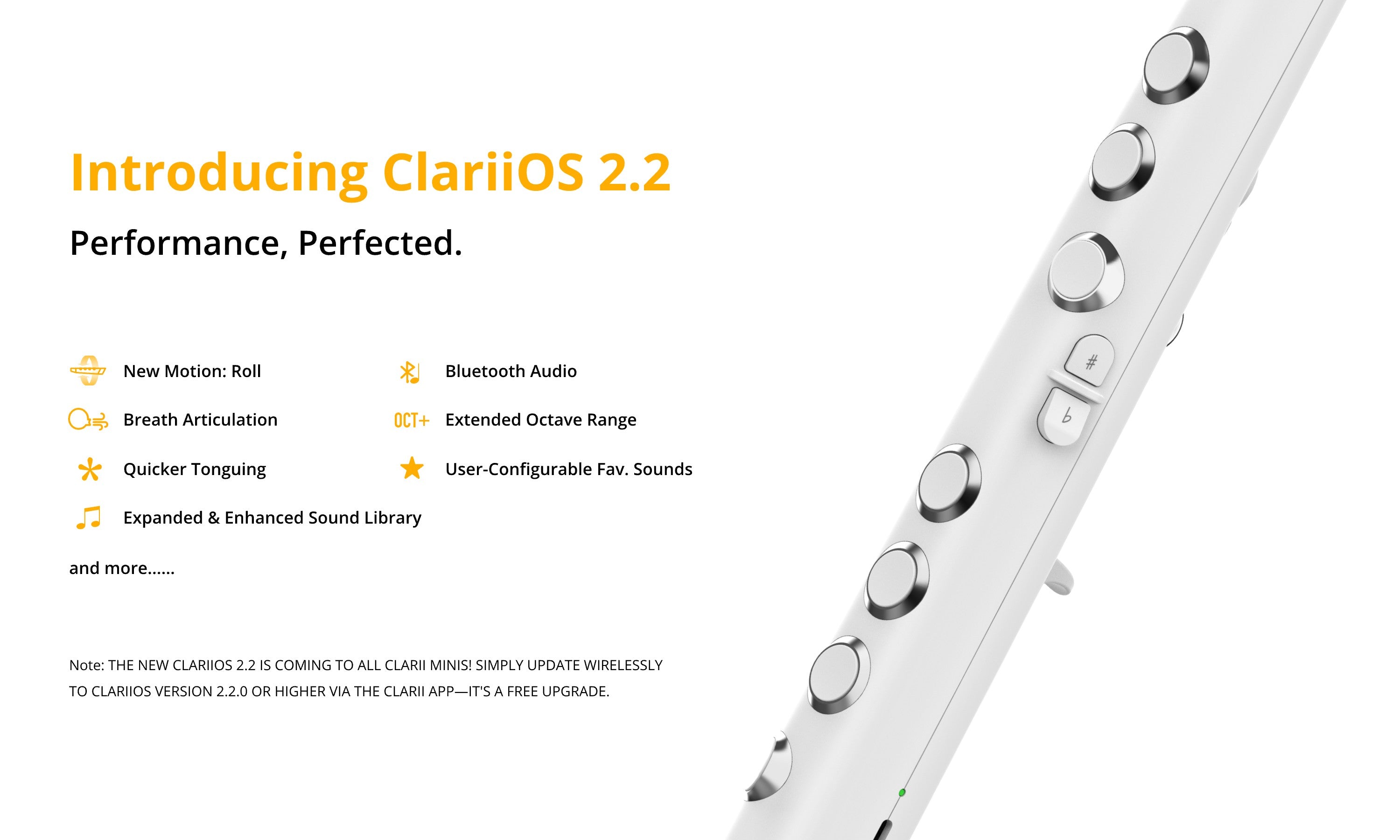 Clarii mini is the ideal starting point for anyone wanting to play a wind instrument, offering a fast learning curve and the ability to quickly start or join fun ensembles with family and friends. Its high-quality sound bank features a variety of instrument sounds, ensuring enjoyable and diverse musical experiences whether playing alongside other Clarii minis or blending in with traditional acoustic instruments.